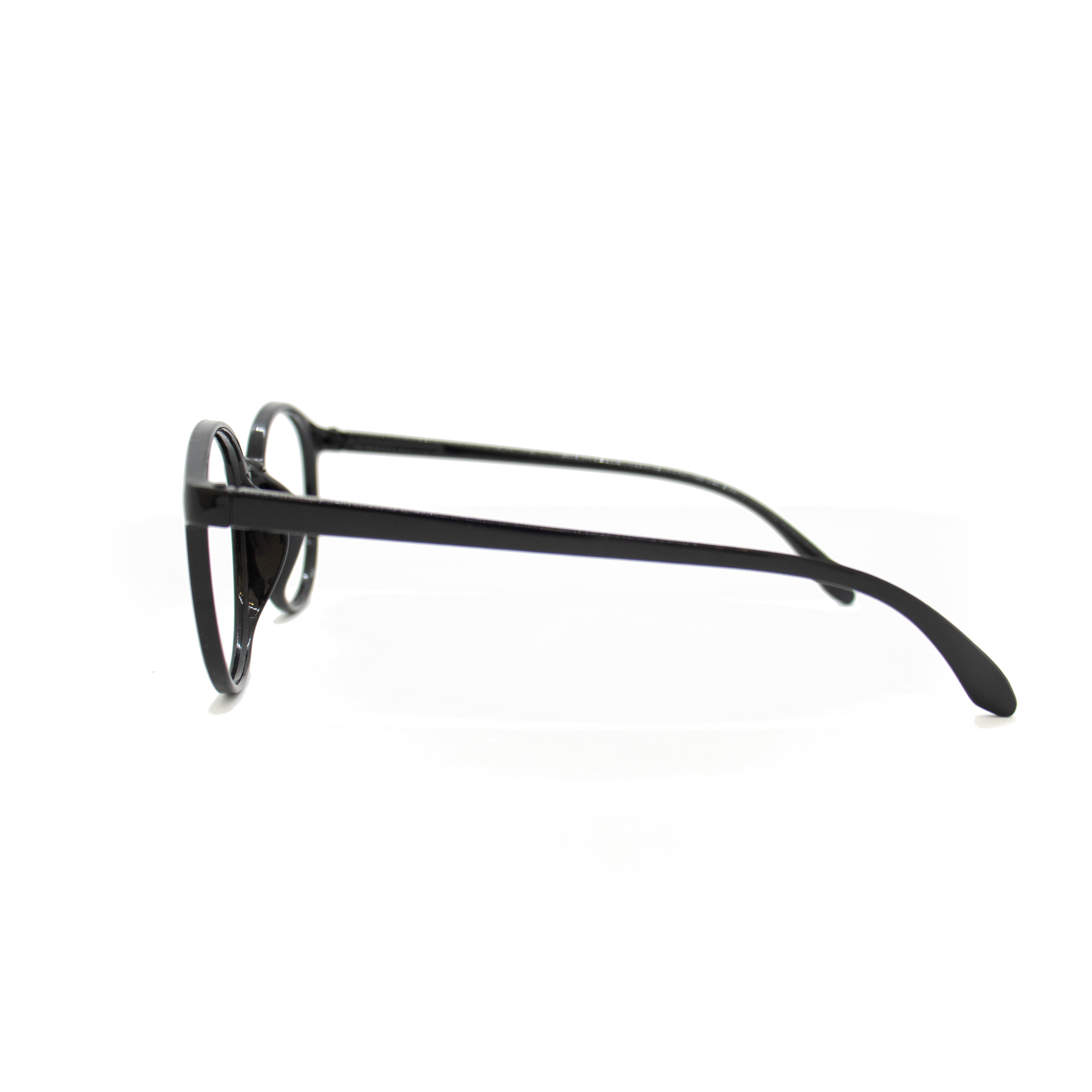 Armação de óculos de grau com aro de acetato fechado esconde a espessura da lente e é recomendada para lentes de alta dioptria positivas e negativas.