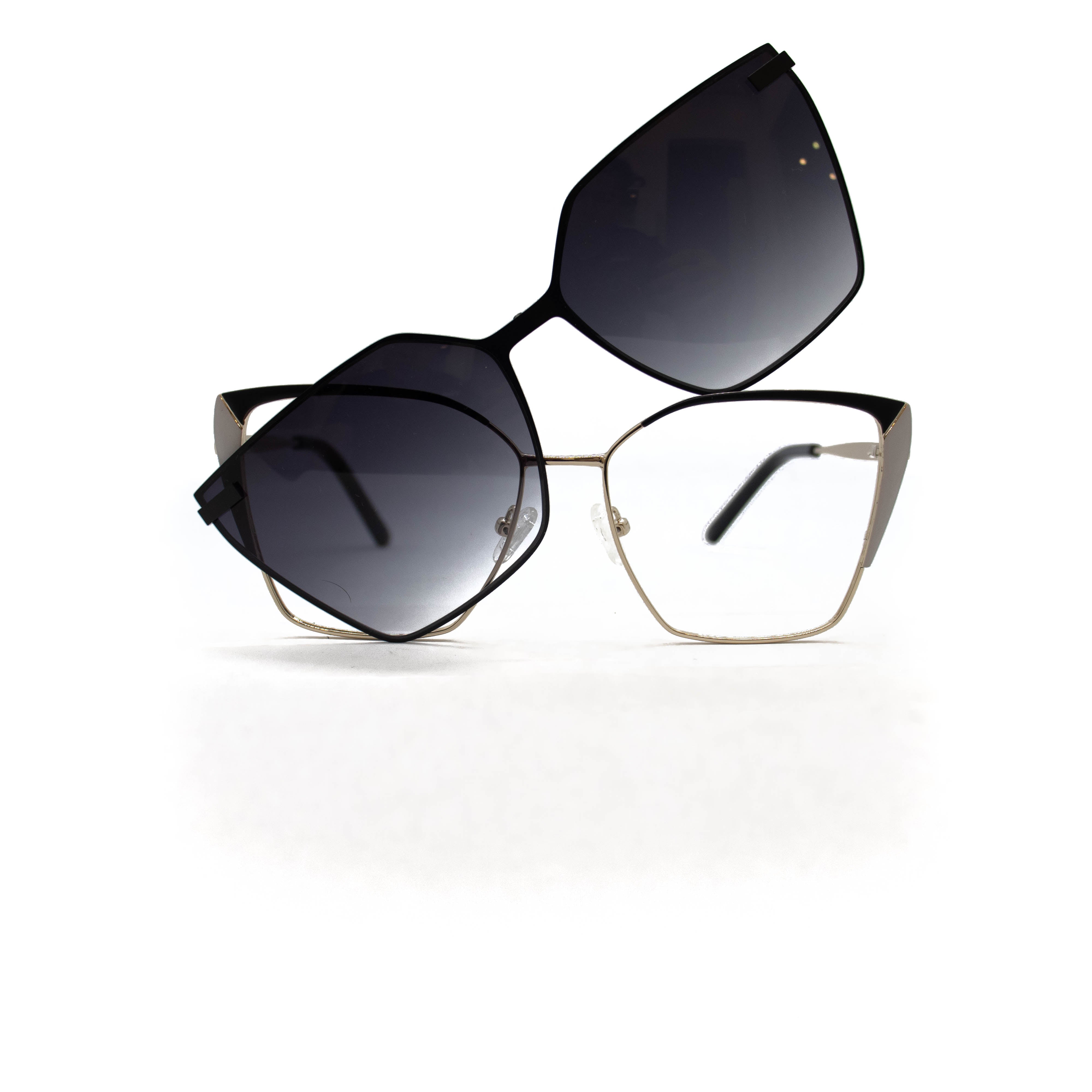 Armação de óculos de grau e de sol fechado em armação no material de metal.