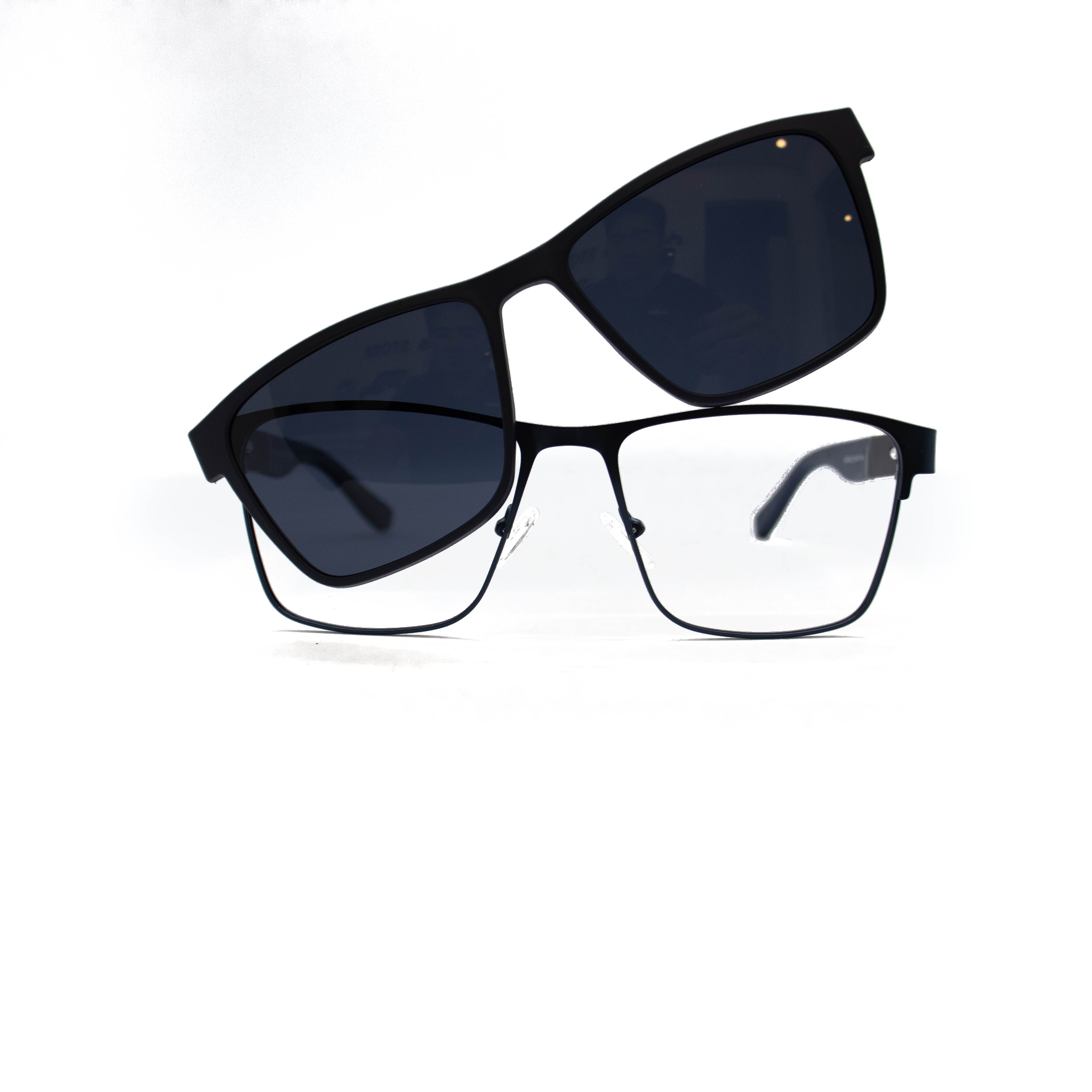 Armação de óculos de grau e de sol fechado em armação no material de metal.