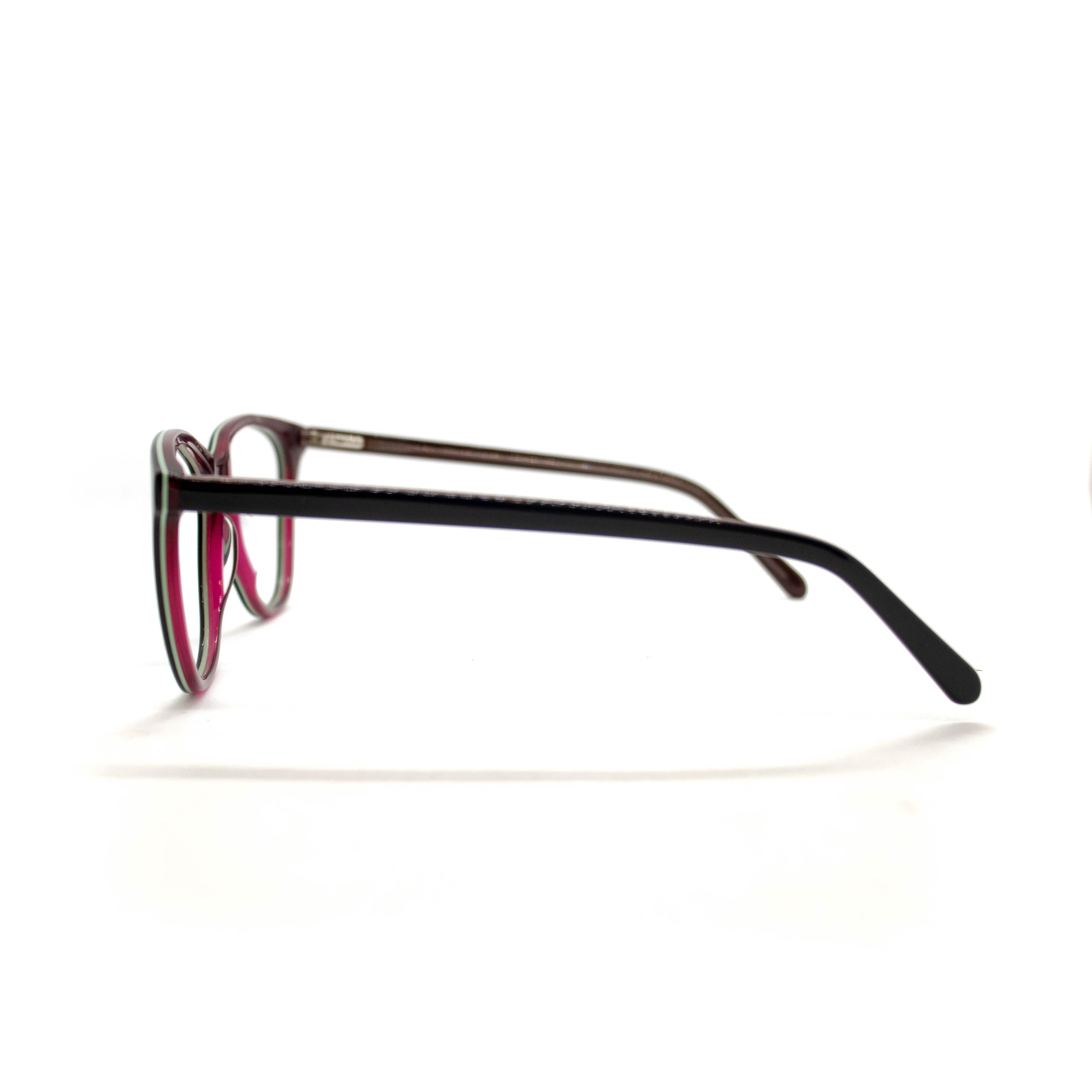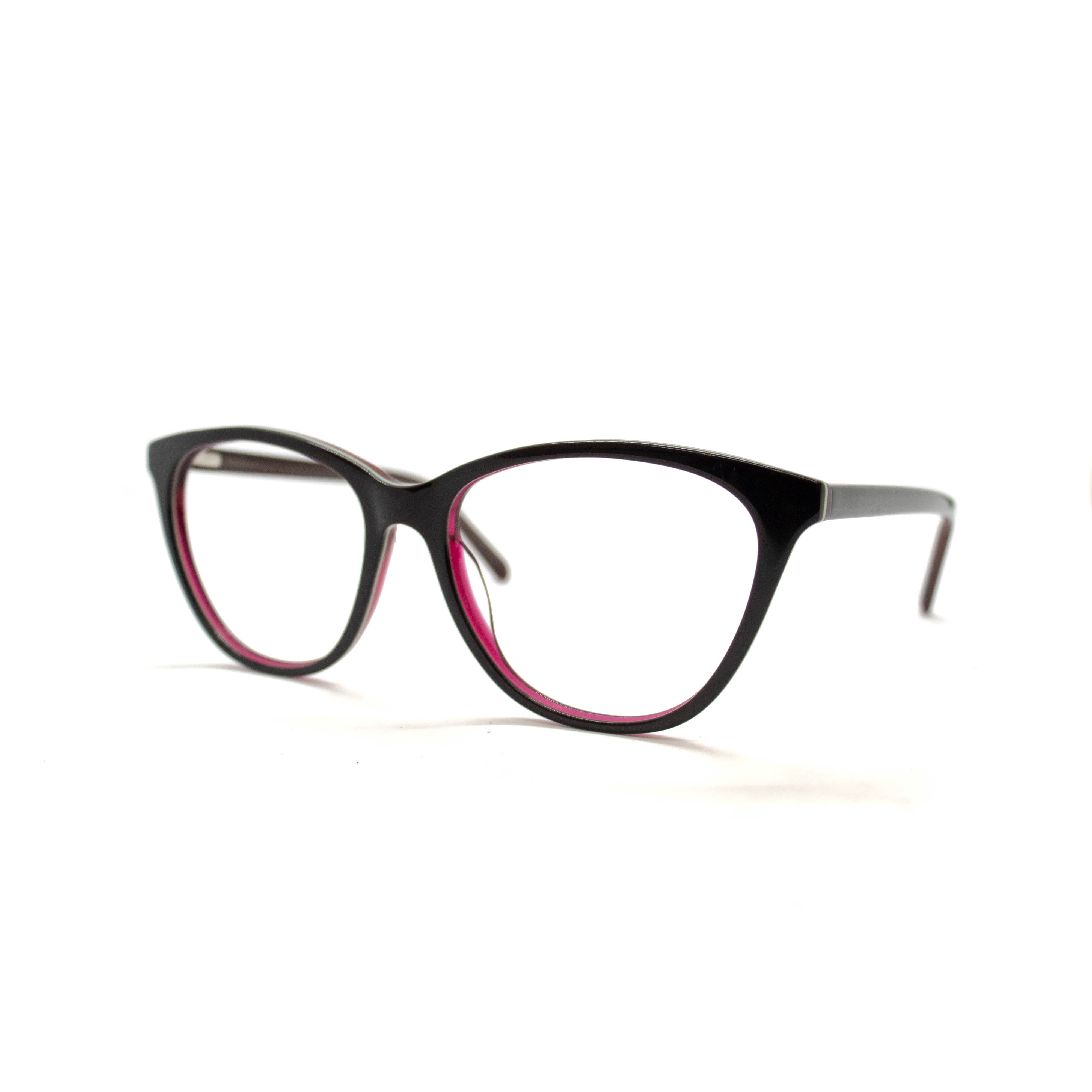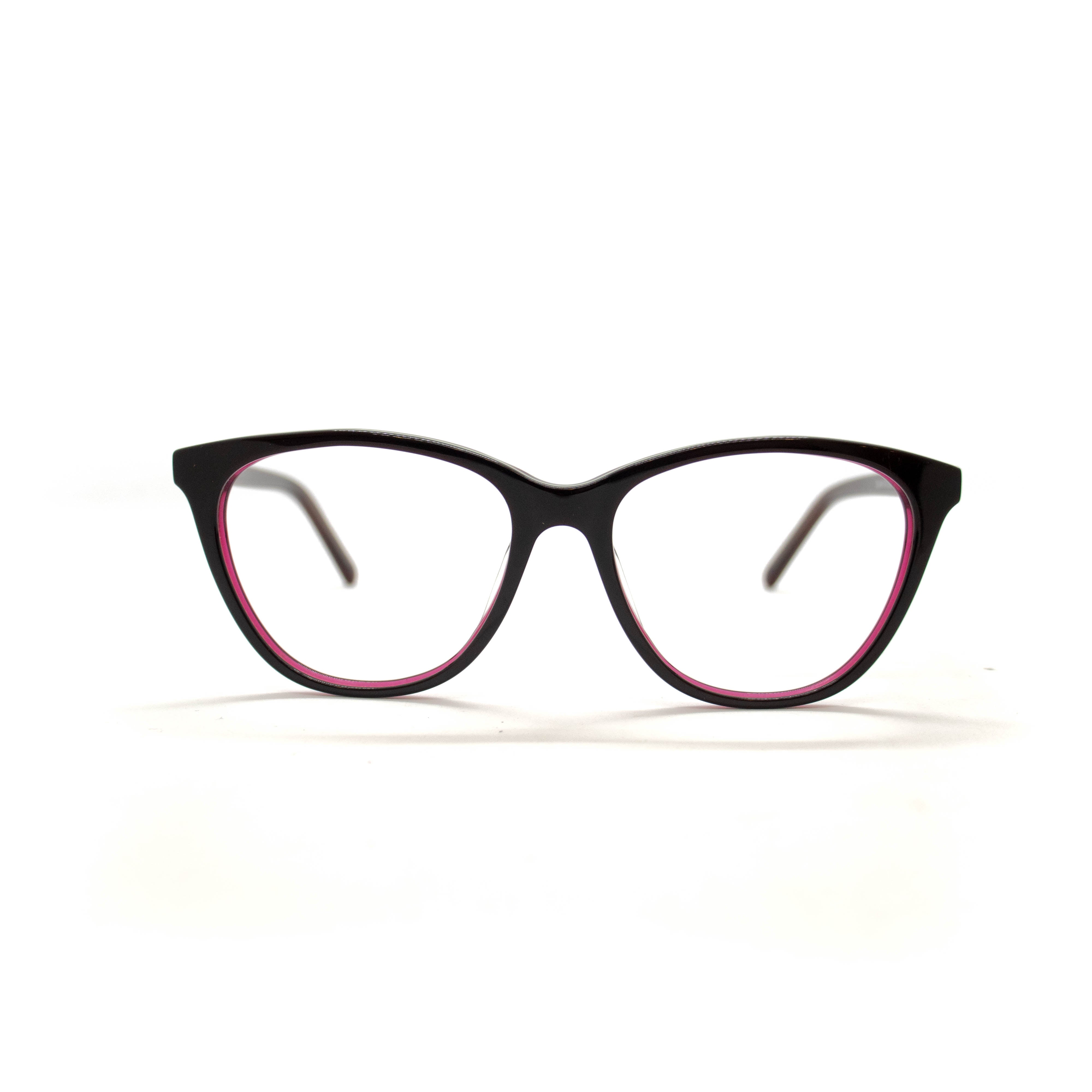 Armação de óculos de grau de fibra de nylon com aro de acetato fechado esconde a espessura da lente e é recomendada para lentes de alta dioptria positivas e negativas.